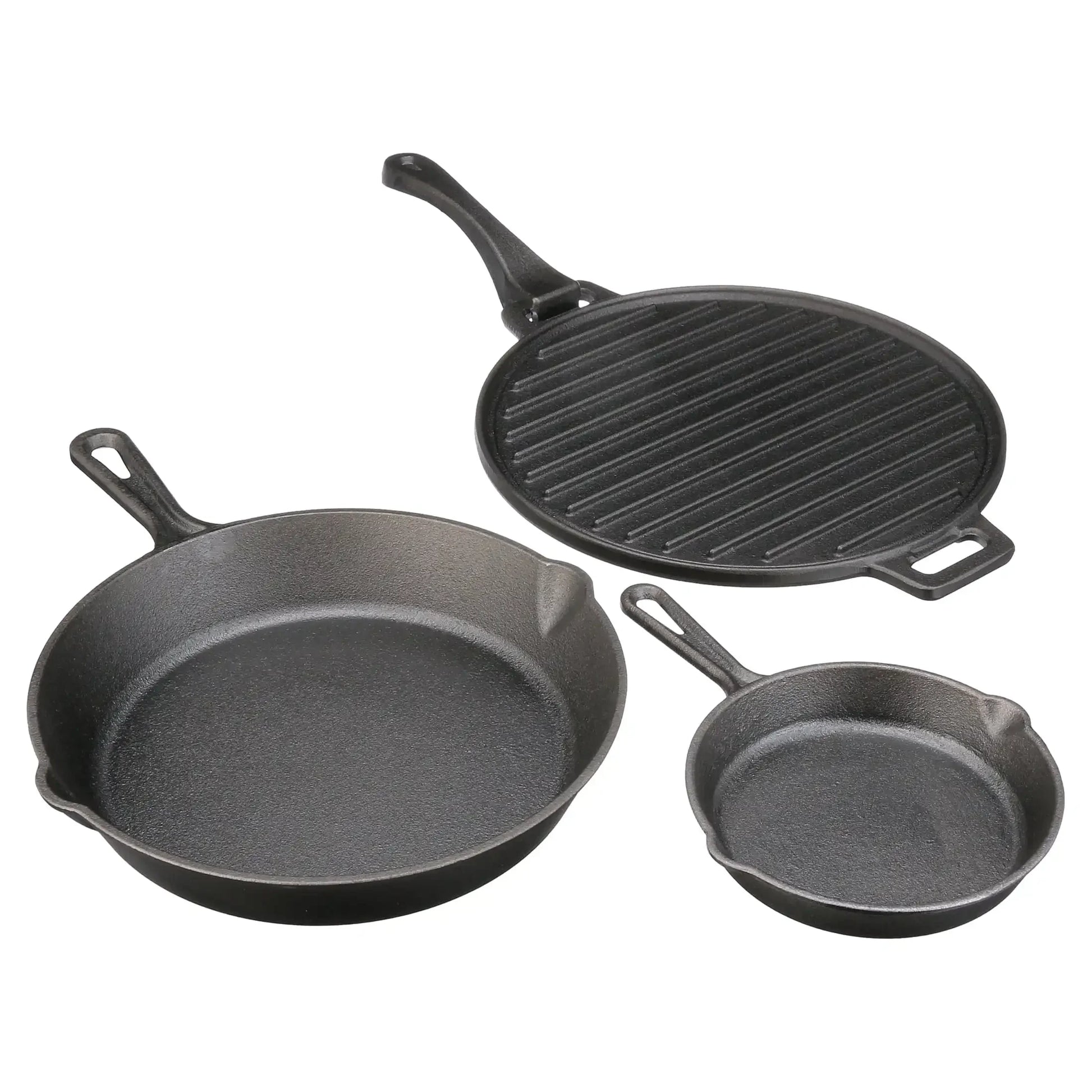 Cast Iron Skillet Set Four Piece Griddle Preseasoned