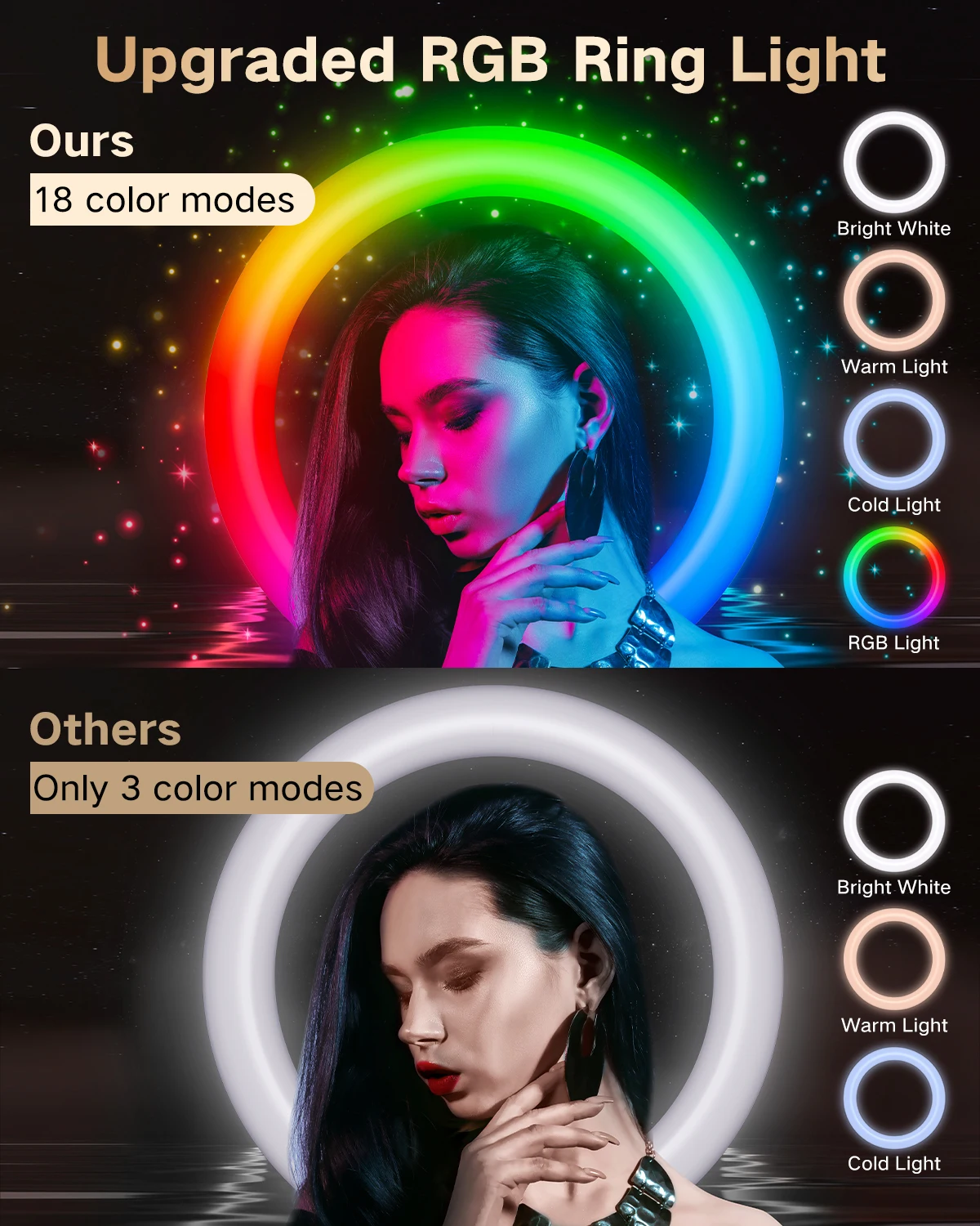- Control lighting and mood with an adjustable RGB ring light, letting you tweak color, brightness, rotation, and music-synced modes, all accessible via remote or app.