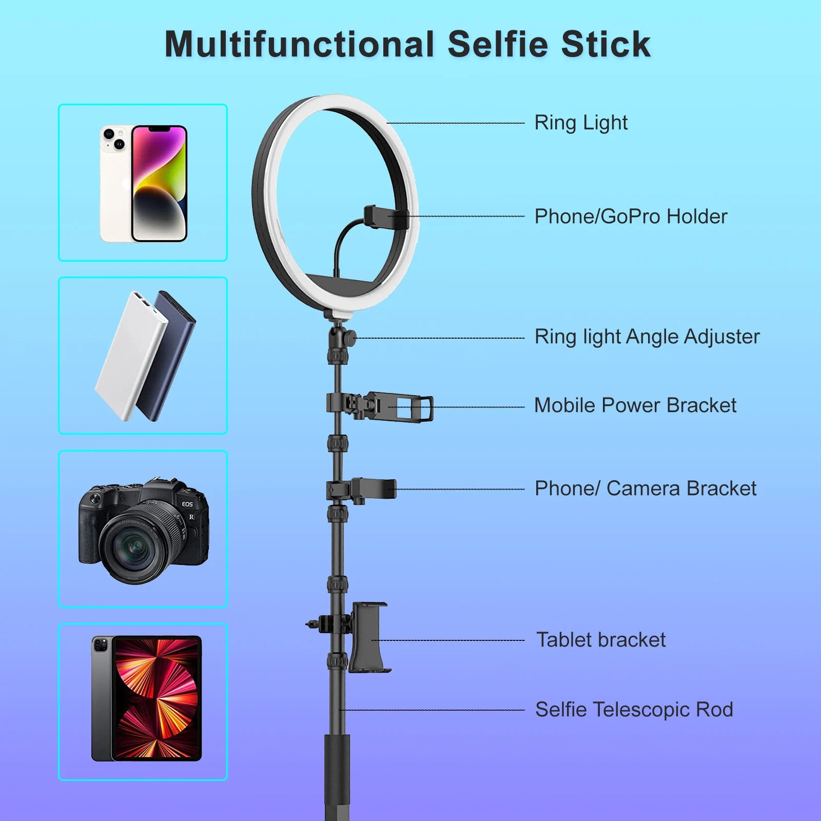 - Go universal with compatibility for your smartphones, iPads, GoPros, and DSLRs, while a 36°–156° rotating stand delivers ideal angles for your group shots and close-ups.