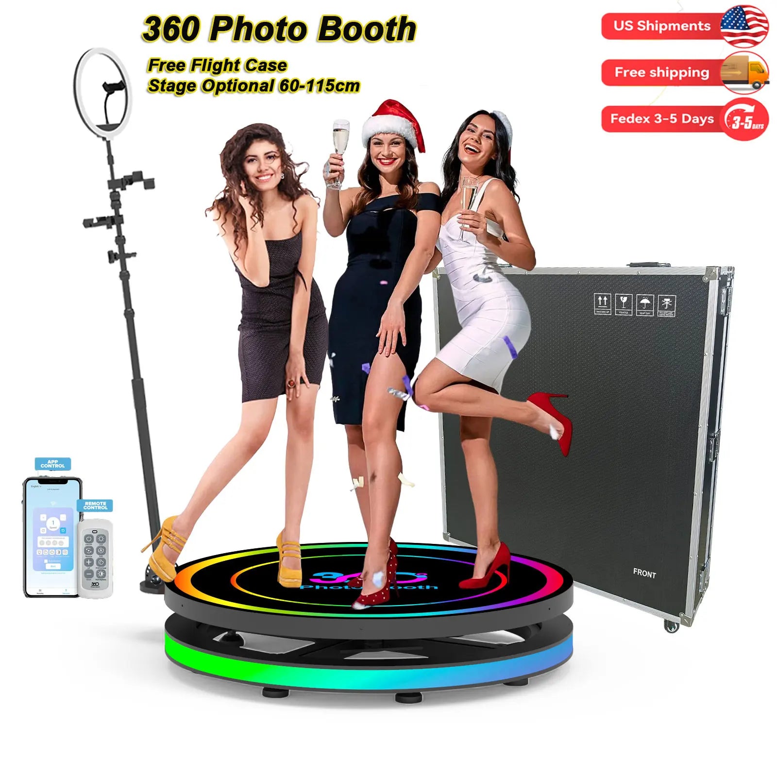 Automatic 360 Photo Booth Machine Degree Camera Video Spinner with RGB Ring Light Flight Case 360 Spin Camera Booth for Parties