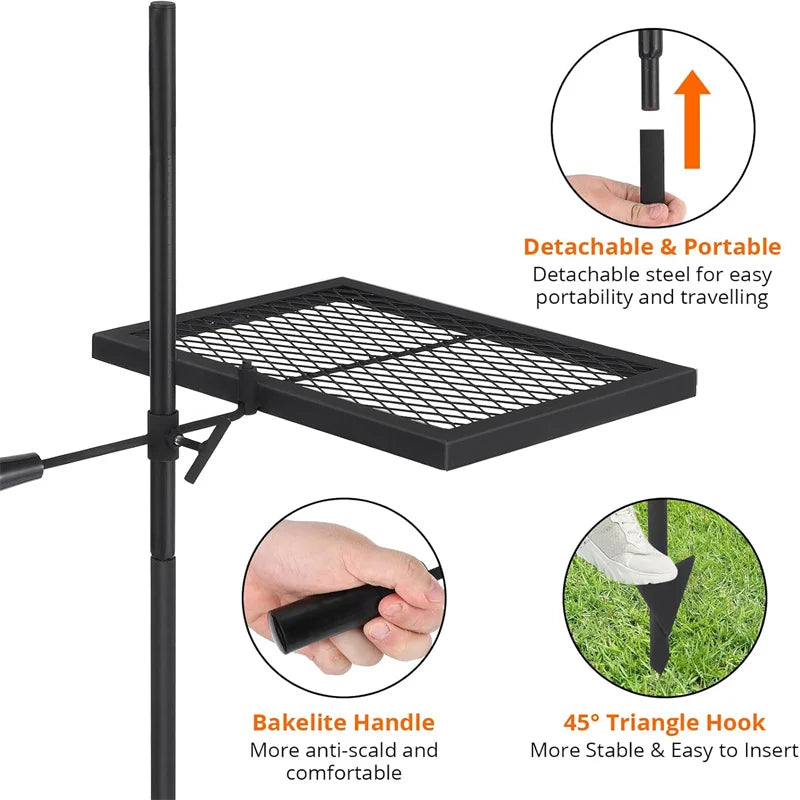 - Heavy-duty steel construction gives you lasting durability to support your grills over campfires without warping, resisting wear from high heat and rugged use.