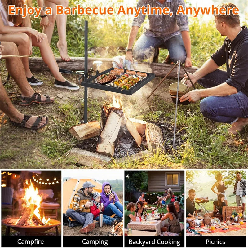 Elevate your outdoor cooking with the HiMISCN Swivel Campfire Grill Grate, a heavy-duty steel grate built for durable performance over open flames, whether you're camping, tailgating, or backyard grilling, and it travels well in a rugged outdoor kit.