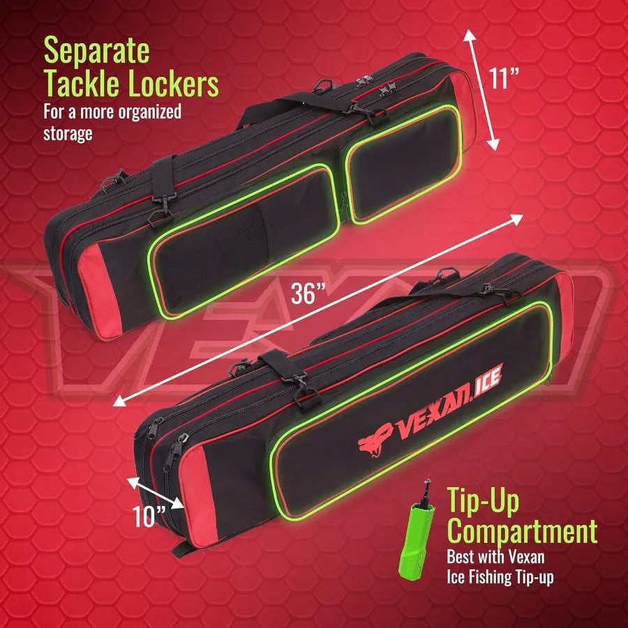 Comfortable & Portable Design: Includes an adjustable shoulder strap and compact 36" length, making it easy to carry while providing spacious, organized storage for all your ice fishing needs.
